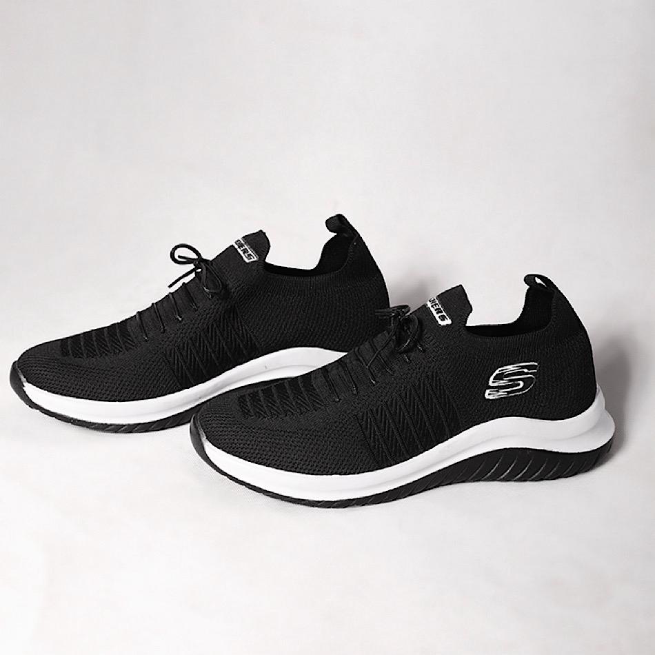 کفش راحتی اسکچرز بی بند طبی مشکی سفید